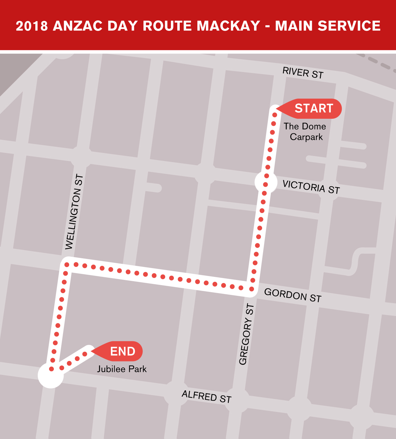 With another successful ANZAC Day parade completed, Mackay Regional Council would like your feedback on the new ANZAC day morning parade route along Gregory Street and assembly location in The Dome Carpark.
