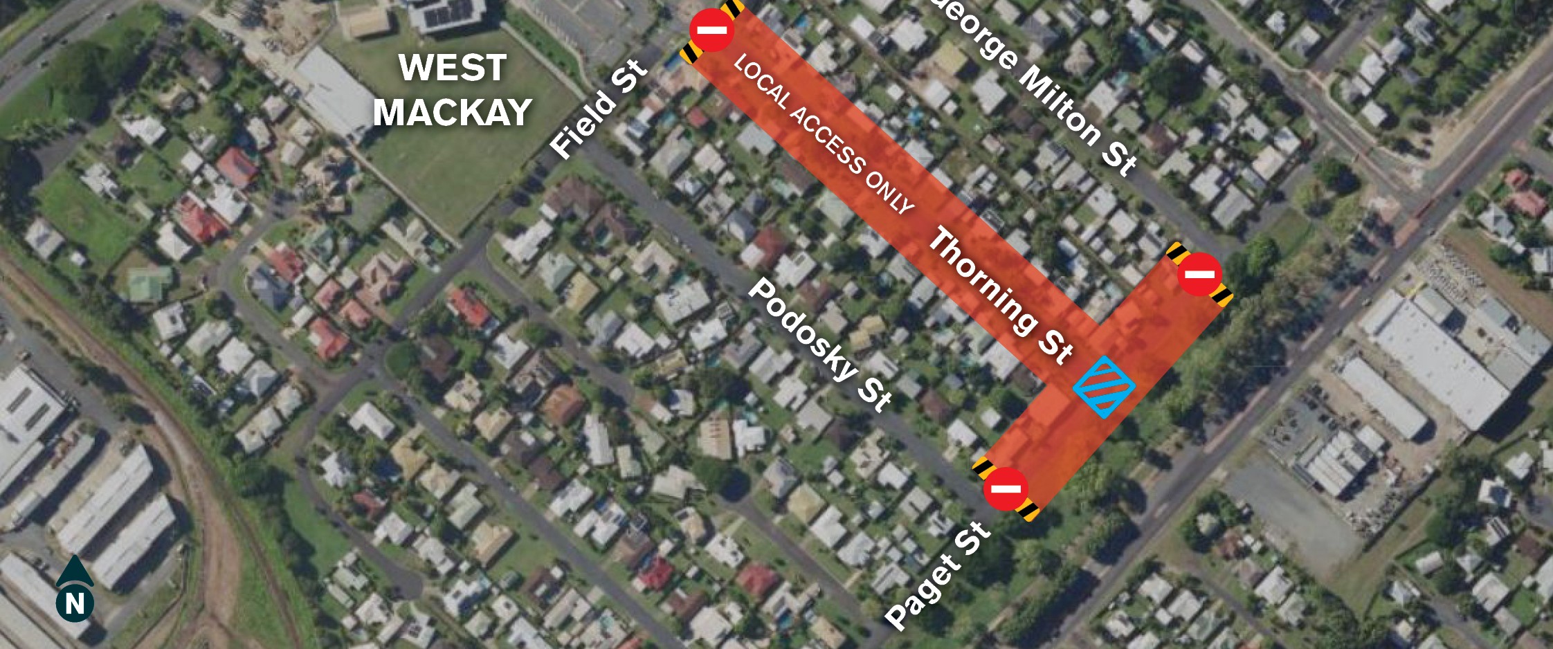 Please note, because of these works, the Paget and Thorning streets intersection will be closed for the duration of the works with local traffic access only.